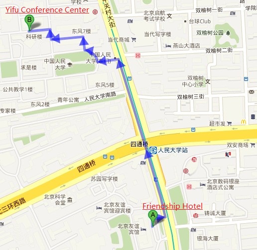 Located at the west gate in Renmin University of China, Guest Hotel is an important hotel receiving guests. It holds conference rooms, function rooms, single rooms, standard rooms,etc. Address: No.59, Zhongguancun Street, Haidian District, Beijing. Tel: +86-010-62516059 Please check in at the reception of Xianjin Building |