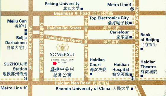 Address: No.15 Haidian Middle Street, Haidian District, Beijing 100080, China Tel: +86-10-5873 0088 http://www.somerset.com/en/china/beijing/somerset_zhongguancun.html Assisant Sales Manager: Nicole YU ( Tel��+86 1860 1348 153 Email: nicole.yu@the-ascott.com |