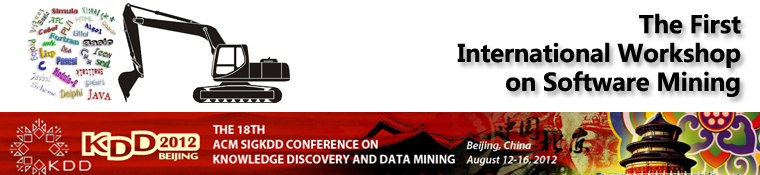 The first International Workshop on Software Mining aims to bridge research in the data mining community and software engineering community by providing an open and interactive forum for researchers who are interested in software mining to discuss the methodologies and technical foundations of software mining, approaches and techniques for mining various types of software-related data, applications of data mining to facilitate specialized tasks in software engineering. The participants of diverse background in either data mining or software engineering can benefit from this workshop by sharing their expertise, exchanging ideas and discussing new research results. Authors who are interested in software mining are invited to submit their manuscripts related to all aspects of software mining including software mining foundations, mining specific software data, software mining in specialized tasks, etc. The best submission, according to the evaluations from the PC members, would be granted the "SoftwareMining-2012: Best Paper Award". Contact: Any questions, comments and suggestions should be directed to softmine2012@gmail.com. |