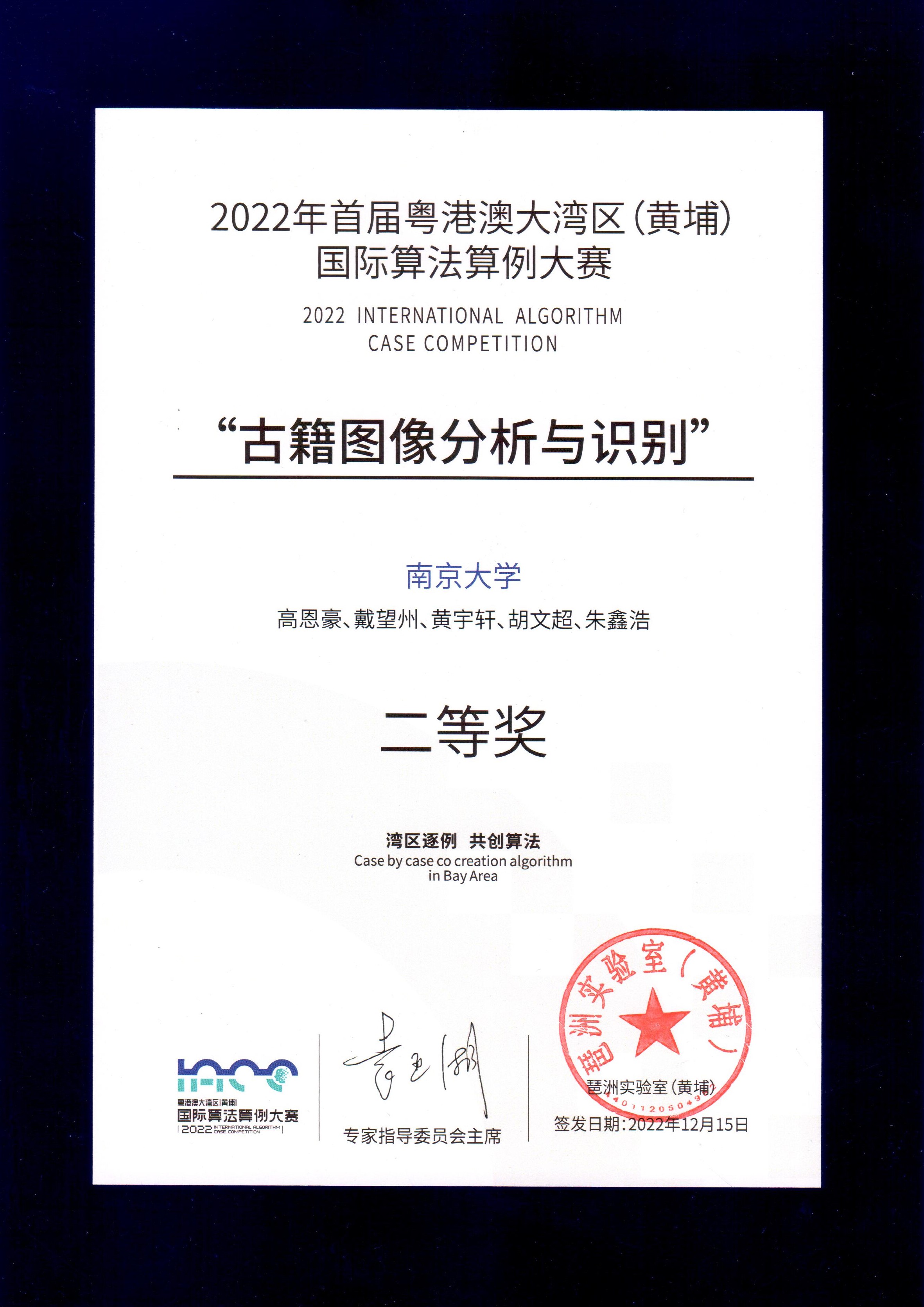 Second Prize (3rd place), Greater Bay International Algorithm Case Competition, 2022. (¥100,000 award) [certificate, ceremony]